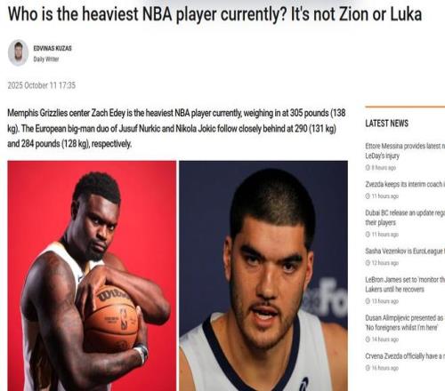 谁是NBA现役体重最大的球员?欧洲媒体BasketNews晒出TOP10名单,其中杨瀚森122公斤排第九,第一名高达138公斤。 并列第十(120公斤):亚当斯、瓦兰、亚布塞莱、夏普、加福德 从并列第十也不难看出这份名单的含金量,以火箭队亚当斯为例,他是现役公认最强壮的球员之一,也是火箭队内线绝对的篮板强点。 另外几名并列的球员也都在所在球队扮演着可靠的内线角色,巨大的体重带来的对抗优势是他们在NBA站稳脚跟的重要手段之一。 并列第九名(122公斤):杨瀚森、杰米森、小温德尔卡特 原本杨瀚森只有114公斤,不足以进入榜单前十名,但被NBA中后,杨瀚森在休赛期进行了针对性的增肌训练,一口气提升了8公斤之多,体重也来到122公斤。 同时从开拓者晒出的杨瀚森训练照来看,他体重增加主要源自于增肌,这也有利于杨瀚森适应NBA级别的对抗,也只有对抗达到标准,杨瀚森才能在NBA的舞台上施展自己的才华。 第八名(126.6公斤):德拉蒙德 作为昔日的篮板王,“庄神”德拉蒙德的体重一直都是他在篮板卡位中重要的武器之一。 第七名(127公斤):恩比德 恩比德在进入联盟之初十分瘦弱,为了适应NBA对抗恩比德不断增重,随后逐步兑现天赋成长为MVP,但过大的体重也让恩比德本就脆弱的膝盖难堪重负,频频出现问题。 因此在今夏恩比德全面减重以降低受伤风险,根据此前福布斯体育记者Evan Sidery报道,恩比德休赛期预计瘦了十几公斤。 第六名(127公斤):克林根 作为杨瀚森的队友,克林根也是一名重量级内线,由于他的风格与杨瀚森不同,更多依靠防守与篮板,因此更加依赖体重带来的对抗与卡位优势。 第五名(128公斤):大洛 生涯初期大洛是典型的传统重型中锋,但为了适应小球时代的发展,大洛在生涯中期开始减重转型,也成功成为现役最好的空间型内线之一,转型后帮助雄鹿队夺冠,也让自己继续长久留在NBA之中。 第四名(129公斤):锡安 锡安是前十榜单中唯二非中锋球员,另外一人是并列第十名的亚布塞莱。 如果不是今夏完成大幅减重,锡安本应获得更高的排名,巅峰期锡安体重一度超过138公斤,休赛期为了健康,也为了下一份大合同,锡安一口气完成减脂约12公斤。 第三名(129公斤):约基奇 相比于锡安,约基奇的体脂明显更高,但生涯至今他却拥有超高的耐久度,与锡安形成鲜明对比。 这与两人的打法息息相关,锡安打法飞天遁地,巨大的体重的确带来对抗与冲击优势,但相应的膝盖、骨骼与关节也承受了巨大的压力。 约基奇则完全不同,他是典型的地板流技术型内线,哪怕身形巨大体脂率不佳依旧不影响他的比赛统治力。 第二名(132公斤):努尔基奇 努尔基奇长期占据着榜单前三位置,与同时上榜的杨瀚森与克林根一样,努尔基奇与约基奇也曾在掘金队处于类似的状态。 不同的是,努尔基奇并非单纯依赖防守与篮板的蓝领定位内线,巅峰期他的投射、策应与组织能力同样出色。 第一名(138公斤):扎克伊迪 巨大的身形是扎克伊迪最大的卖点之一,也让其进入NBA后迅速在内线站稳脚跟,虽然体重过大导致其速度较慢攻防存在局限性,但凭借细腻的内线终结技术,扎克伊迪的未来依旧十分光明。 |