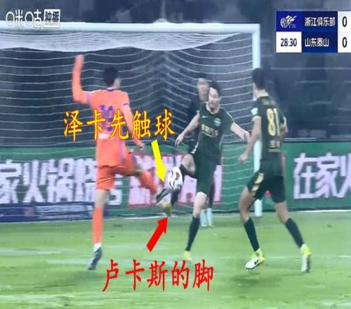 VAR没看清中超慢镜头显示:山东泰山被漏判点球,泽卡先踢到球