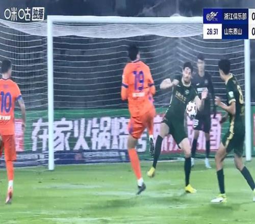 有VAR也没看清是谁先碰到球?也许是主裁判看错了吧!上半场双方踢成1比1,如果再来一个点球,山东泰山或许就是2比1领先了。反而是下半场开始后浙江队再进1球以2比1领先。