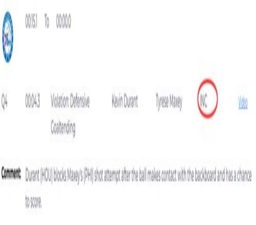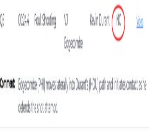赛后当值裁判解释这一球时说道:“根据规则,只有当值裁判在场上第一时间吹罚干扰球,该回合才能进入回看流程。比赛实时进行过程中,裁判组判定这是一次成功的封盖。” 第二次漏判,发生在距离加时赛结束还有24.4秒,76人队的埃奇库姆在防守杜兰特的投篮时,横向移动切入杜兰特的进攻路线,并主动发起了身体接触。这是一次漏吹的投篮犯规,杜兰特将球打进,所以火箭本该获得加罚一球的机会。杜兰特也向裁判摊手表示对方犯规,但裁判没有表示。这次漏判是火箭吃亏,76人获利。